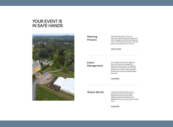 A new website in 2023 to show case Flint & Lambourn Marquees' services for private and corporate events. A fresh look and consolidated content that supports a number of galleries of images that the company owner uses to show potential clients.